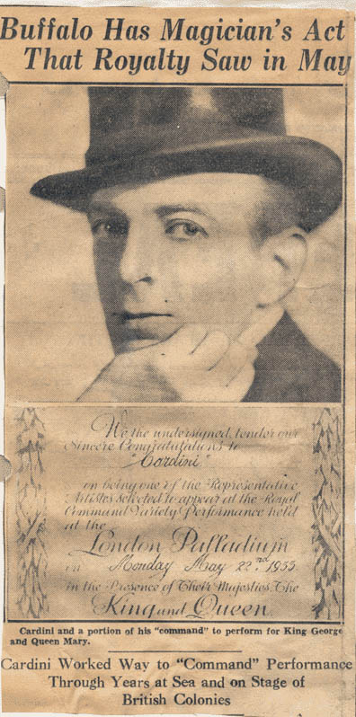 "Cardini and a portion of his "command" to perform for King George and Queen Mary."